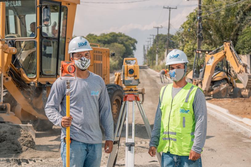 Para garantir que o projeto seja executado exatamente conforme planejado, uma equipe de topografia deverá estar atuando junto à frentes de serviço, efetuando demarcações e verificando conformidade no posicionamento da obra.